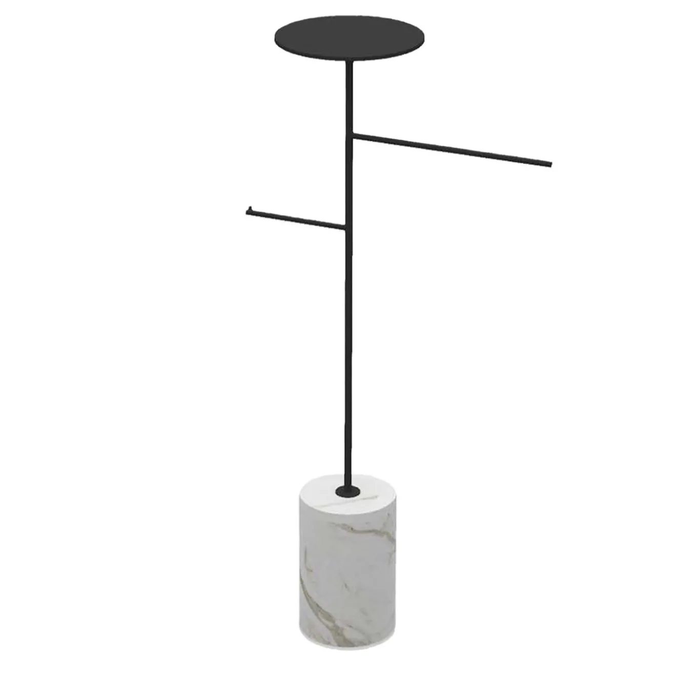 A gorgeously harmonious combination of minimalist lines traces the profile of this extraordinary coat hanger and object rack, enhanced with an impeccable juxtaposition of black and white tones. Fashioned of black-lacquered iron, the clean, functional structure with two horizontal arms and a round top tray rests on a sleek cylindrical base made of prized White Carrara marble, and available in other marble variants. Color is also customizable, please ask the Concierge for details.