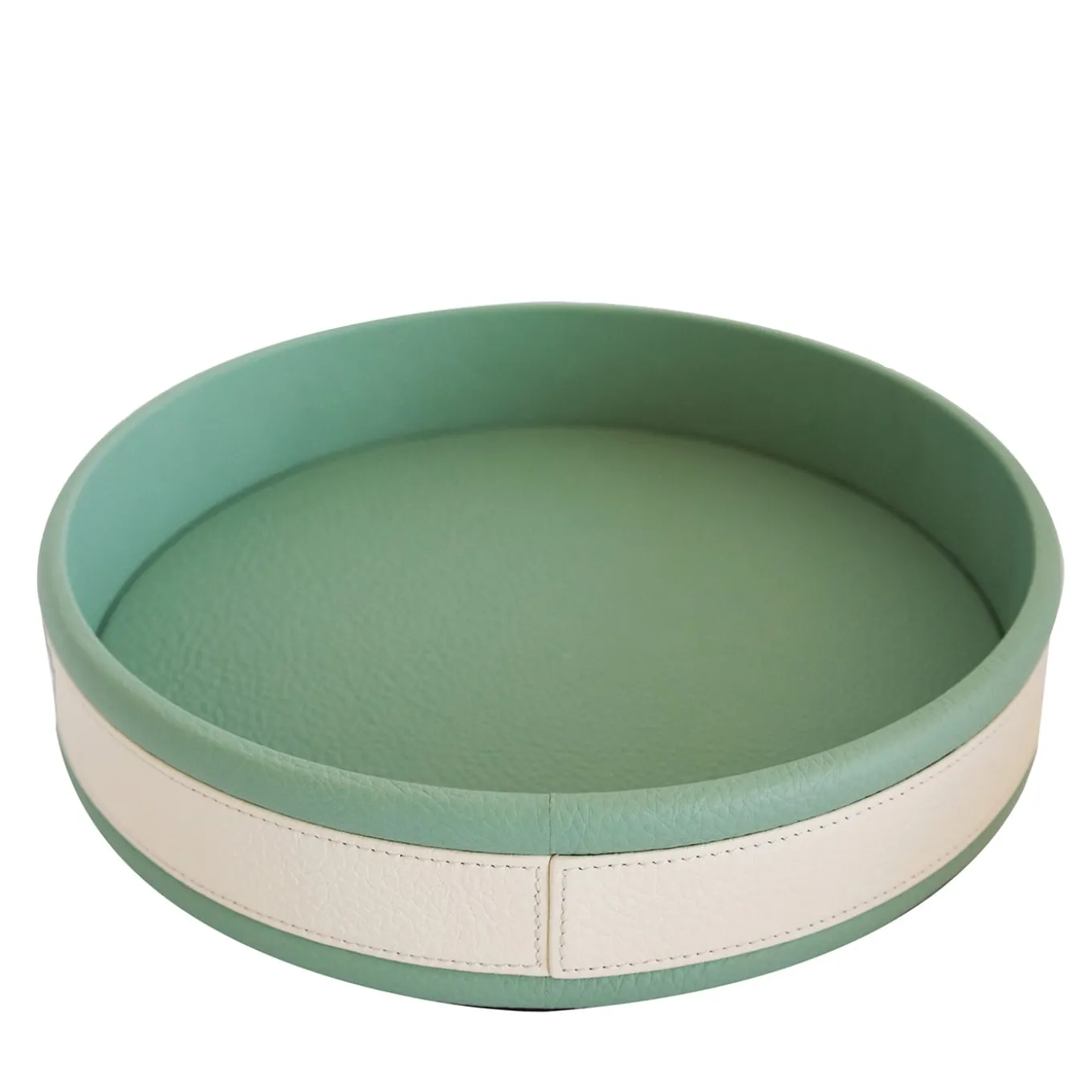 This stunning green-and-white tray combines a charming vintage flair with a sophisticated contemporary character. Perfect to adorn a modern decor, it is handcrafted and beautifully dressed in a soft and fine full-grain leather upholstery. Available in six different color combinations, please check the Artemest catalog for details.