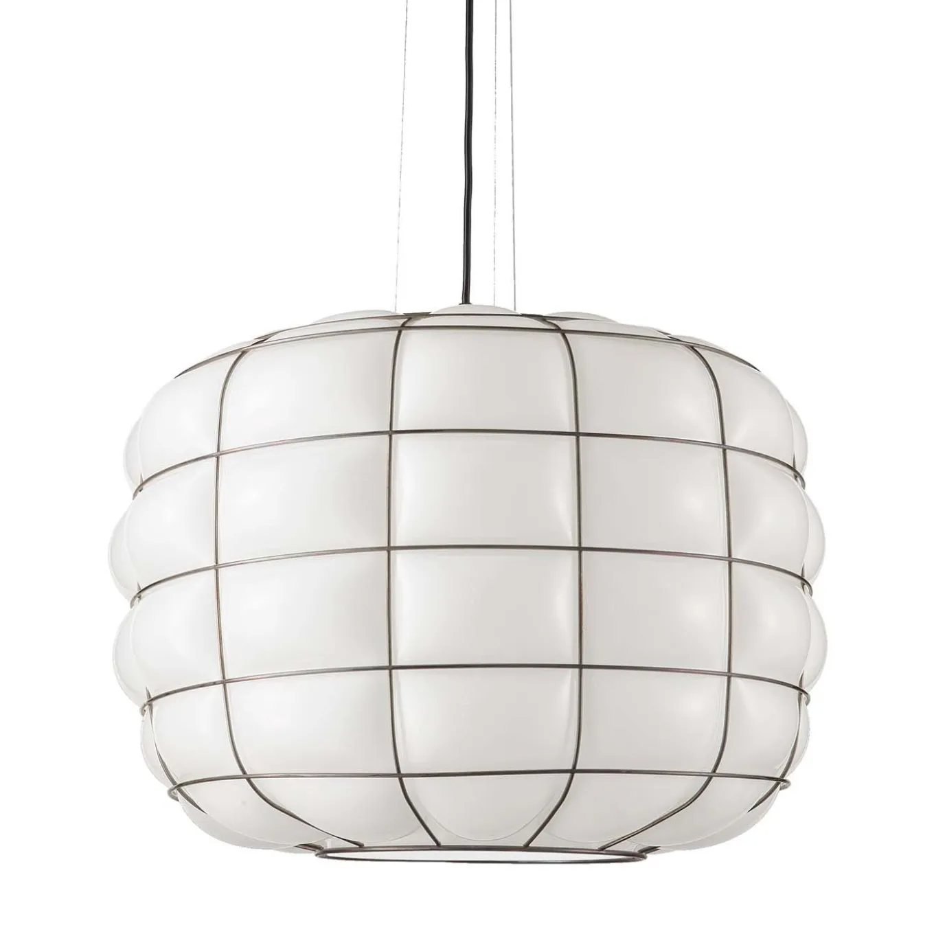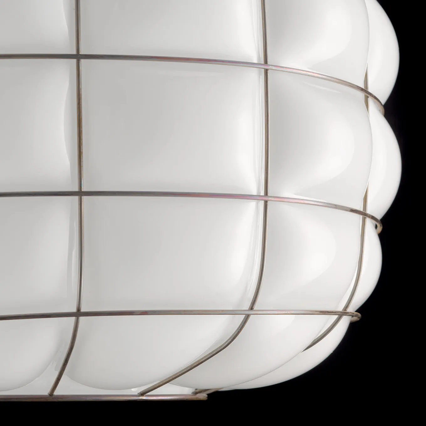 This exquisite ceiling lamp is made according to the artisanal methods developed in Murano for centuries. Its bronzed steel structure encapsulates the white mouth-blown glass shade so that the glass bulges out, creating characteristic curved wedges. The light comes from three light bulbs and is diffused throughout the surface of the piece. The lightbulbs are E27 max 60W (also available in UL E26 max 60W).Due to the artisanal nature of the process, slight variations may occur. The metal�s finish and the glass�s shade can differ from piece to piece, enhancing the uniqueness of each creation.