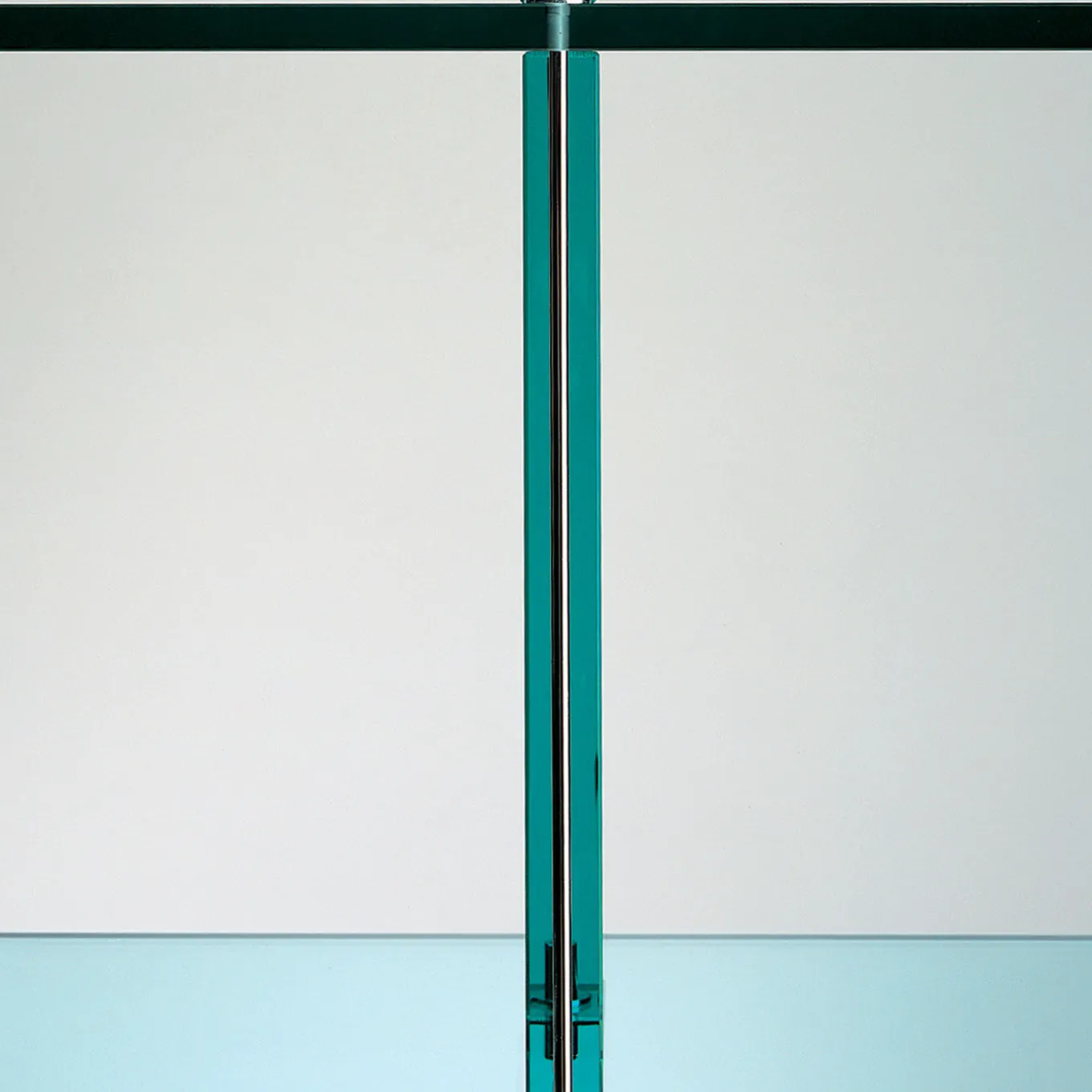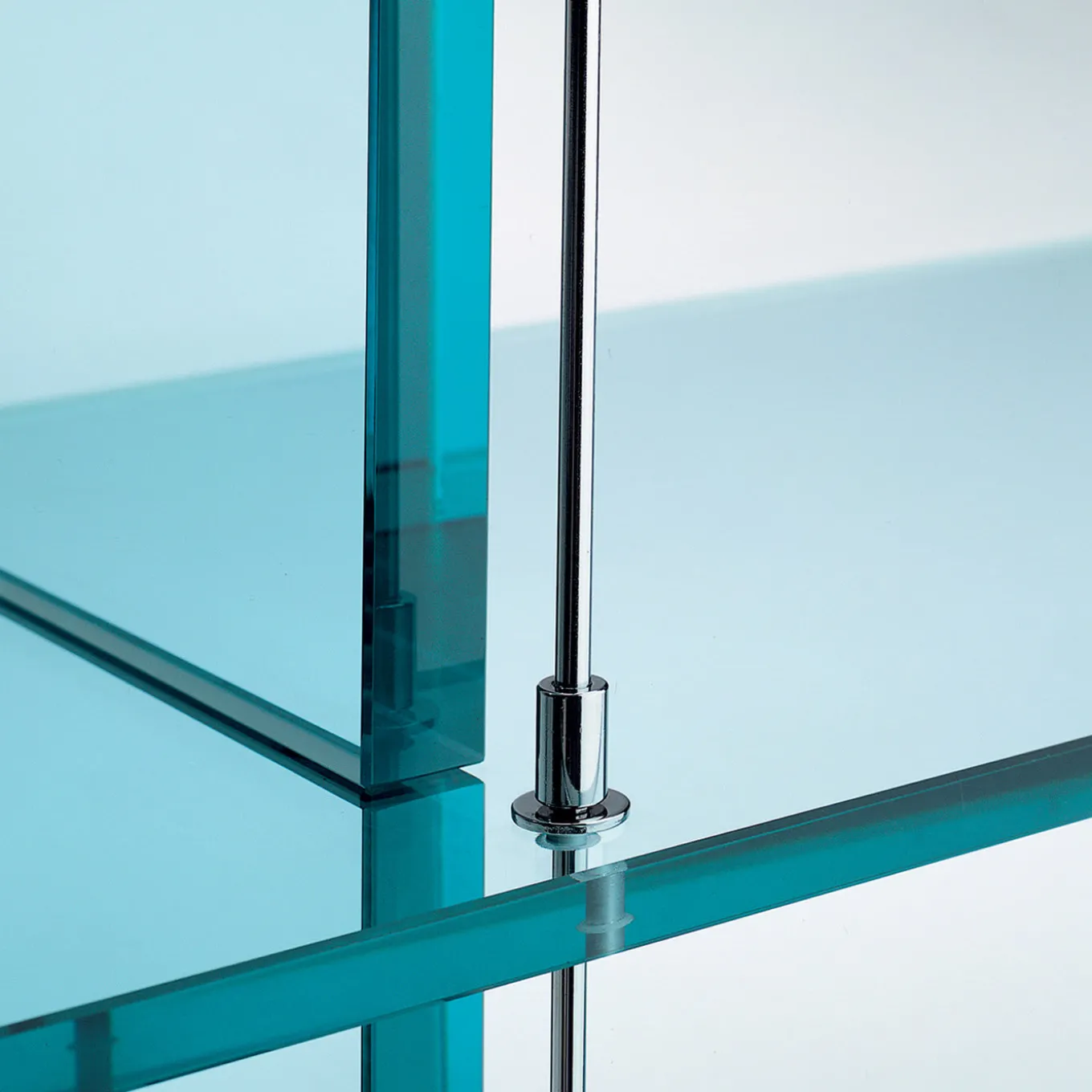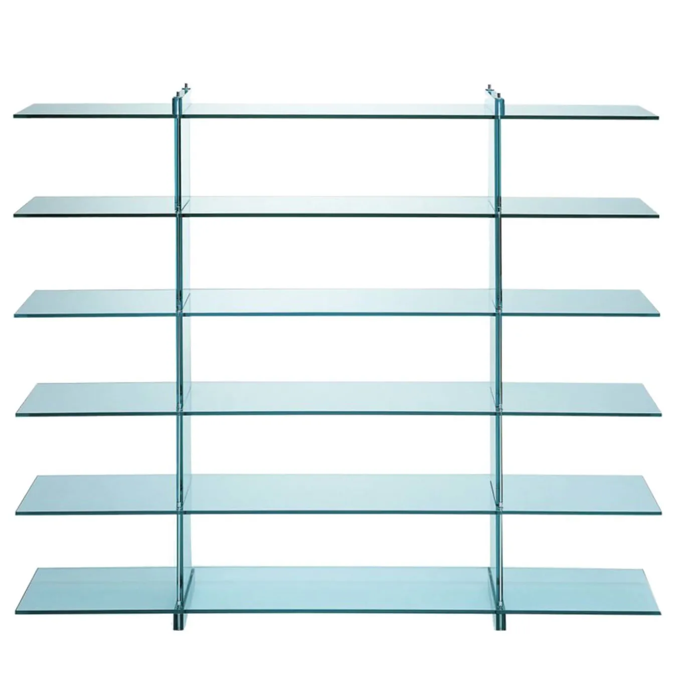Designed by Renzo Piano, this bookcase marks the first design piece conceived by the iconic architect produced by FontanaArte. It is uniquely crafted using only one material: glass. Open on both sides, this piece combines panes of 15mm and 25mm thickness for respectively the shelves and the vertical supports. Chromed metal hardware. This item is only wired for 220V and it is sold with an adapter.