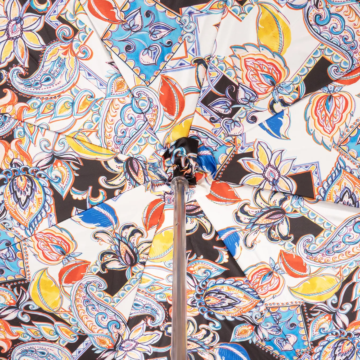 The Testa Siciliana umbrella features a distinctive enameled brass handle, showcasing rich cultural heritage and craftsmanship. With a manual opening mechanism and made from 100% polyester, it combines practicality with artistic flair. Measuring 93 cm in length and 102 cm in diameter, this umbrella offers stylish protection. Handmade in Italy, it embodies timeless elegance and exceptional quality.