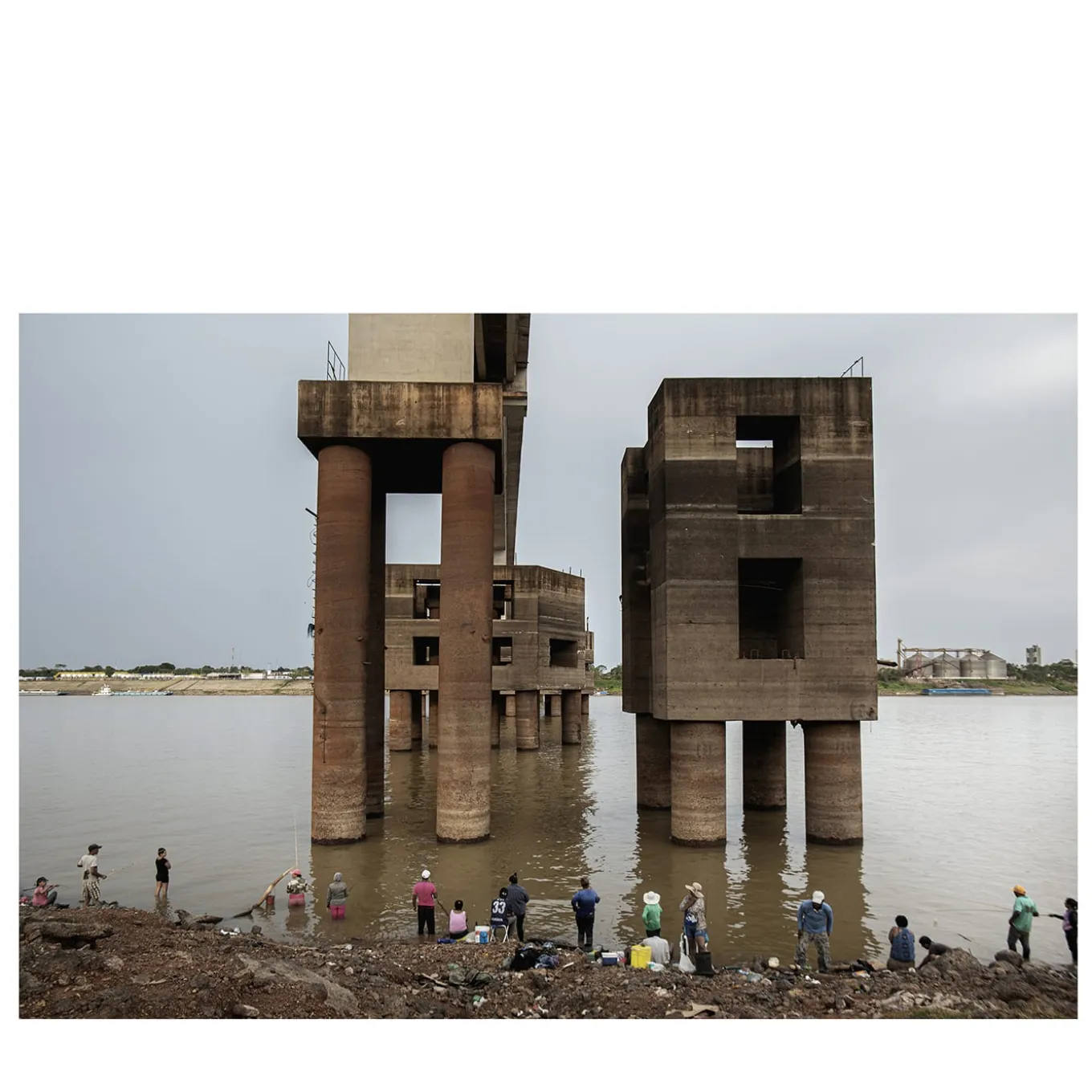 Fishermen under Madeira River’s bridge in Porto Velho, Brazil on September 2019. In the background, silos are used to store soya and grain. The implementation of infrastructure projects surrounded by natural reserves brings to the uncontrolled exploitation of timber, opening the space for illegal deforestation which provides extensive cattle breeding. The Artwork is available in Limited Edition in two sizes, printed on fine art archival paper Hahnemühle Photo Rag Ultrasmooth 305 gsm, signed.