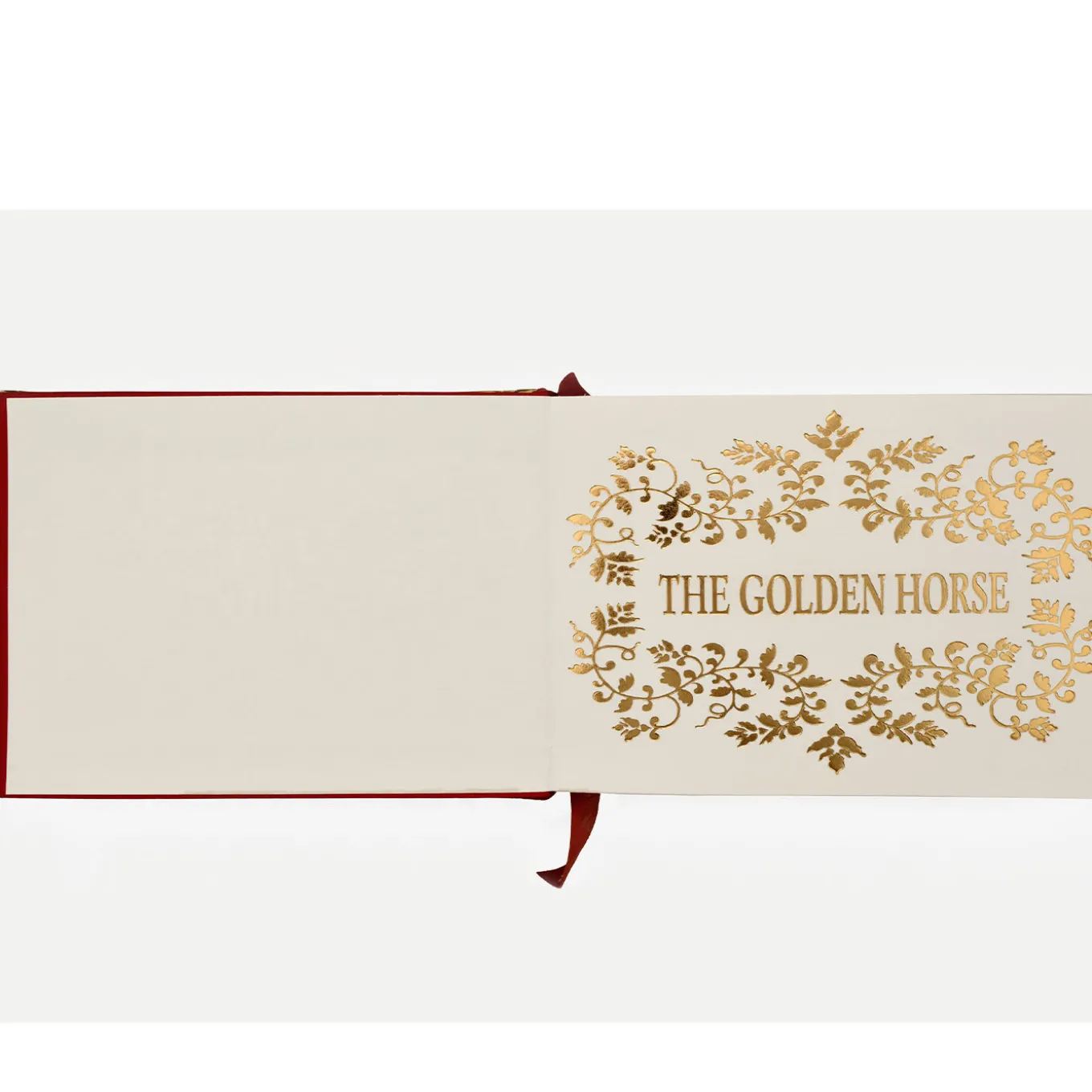 The binding is executed by hand using red-dyed leather and the finest Italian silk. The two covers are in leather with a central hand-made bas-relief in copper with a gold finish. This unique book in English depicts the most important types of horses in the world and their relationship with men. This precious objects comes with a red velvet box.