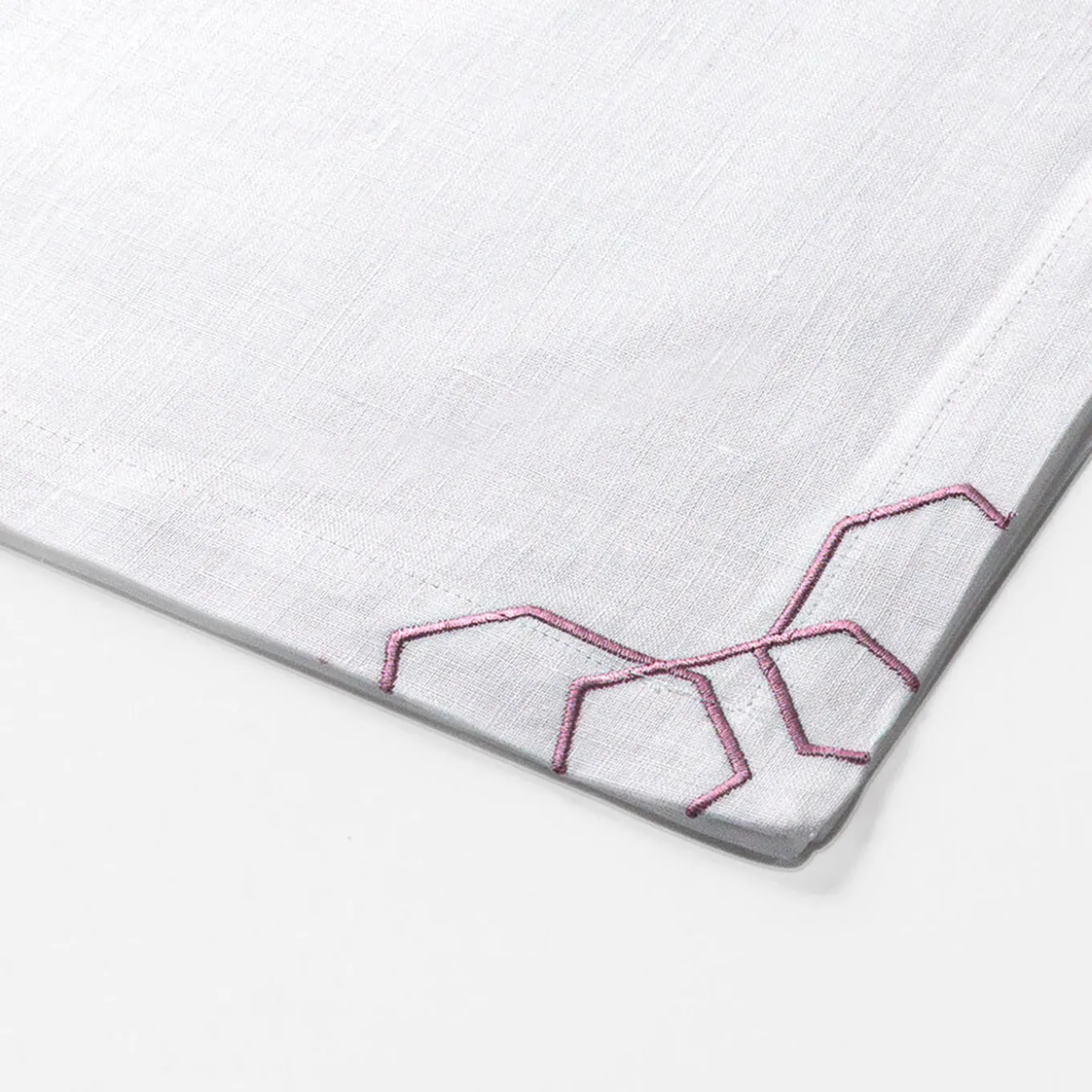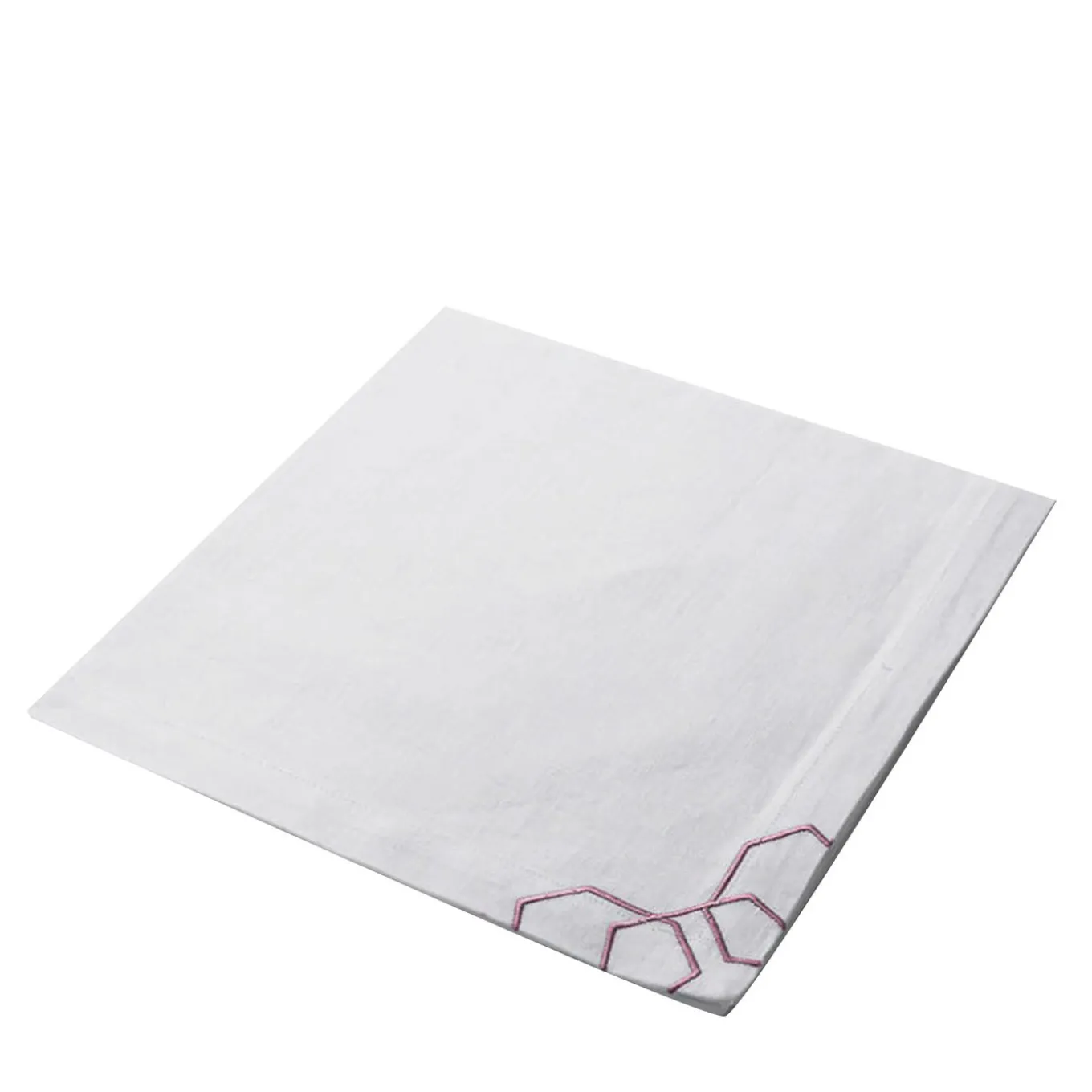 Set of 4 napkins measuring 48×48 cm each, crafted from 100% linen for a refined texture and durability. Each napkin features subtle embroidery in one corner, adding a touch of elegance to the crisp white fabric. Designed for versatility, these napkins complement a variety of table settings with their clean lines and tasteful detail, perfect for both everyday use and special occasions.