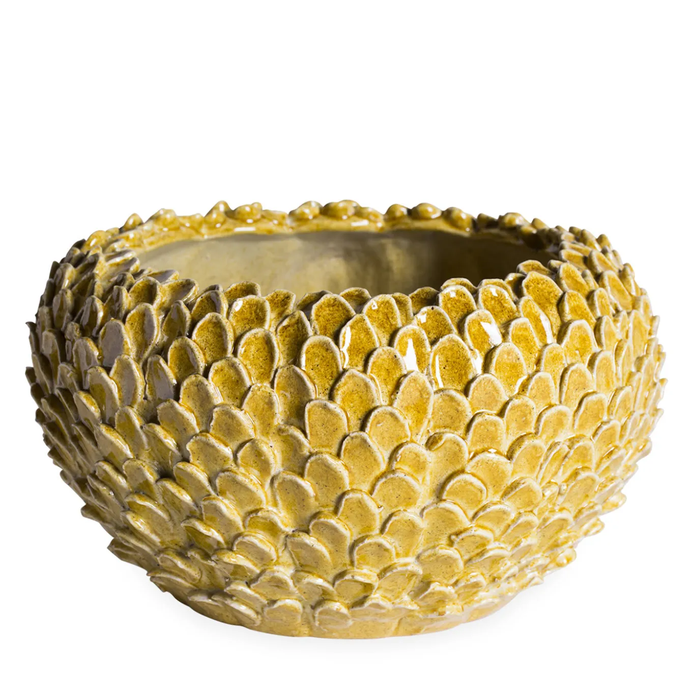 Individual petals give gorgeous texture to this earthy-yellow maiolica bowl, masterfully handcrafted by the ceramic artists of the Tuscan atelier ND Dolfi.