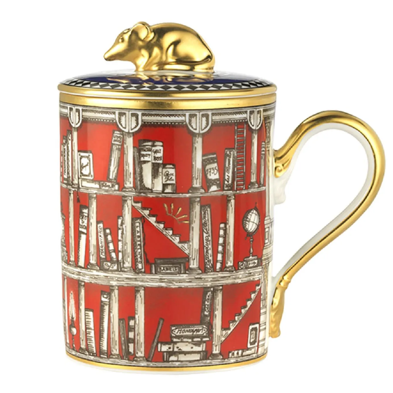Imagine sipping your warm drink from this elegant, eighteenth-century style decorated mug, crafted from the most exquisite porcelain. Whether it be a gift for yourself or someone else, this superb piece, with its precious gold Mouse Lid, will be a unique addition to an extravagant dining set.