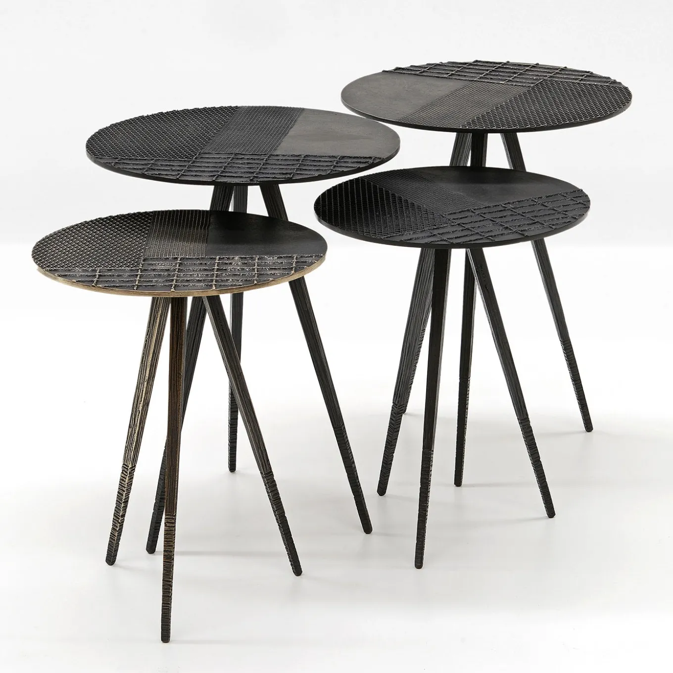 The Touch nesting tables are a series of small tables entirely crafted from black cast bronze. Each table features a top adorned with hand-crafted textures, also in cast bronze, and is supported by three elegantly shaped legs. These tables exemplify the harmonious blend of form and function, adding a touch of sophistication to any space. For more information, please contact the Concierge.