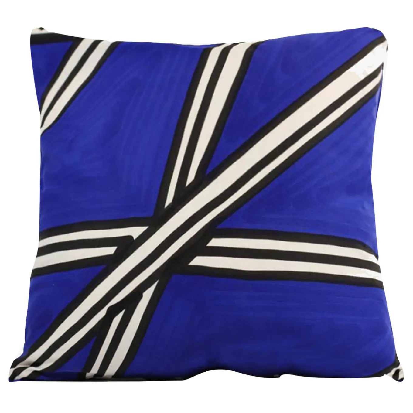 Bright blue optical hand-painted interior cushion. 100% cotton. This modern, eye-catching, irregular striped cushion will add more character to your home. Indoors on beds, armchairs, sofas and chairs, cushions offer support, rest, and a rich sense of style. The unique design and the high-quality material make this cushion a must-have for those who love vibrant contemporary atmospheres.