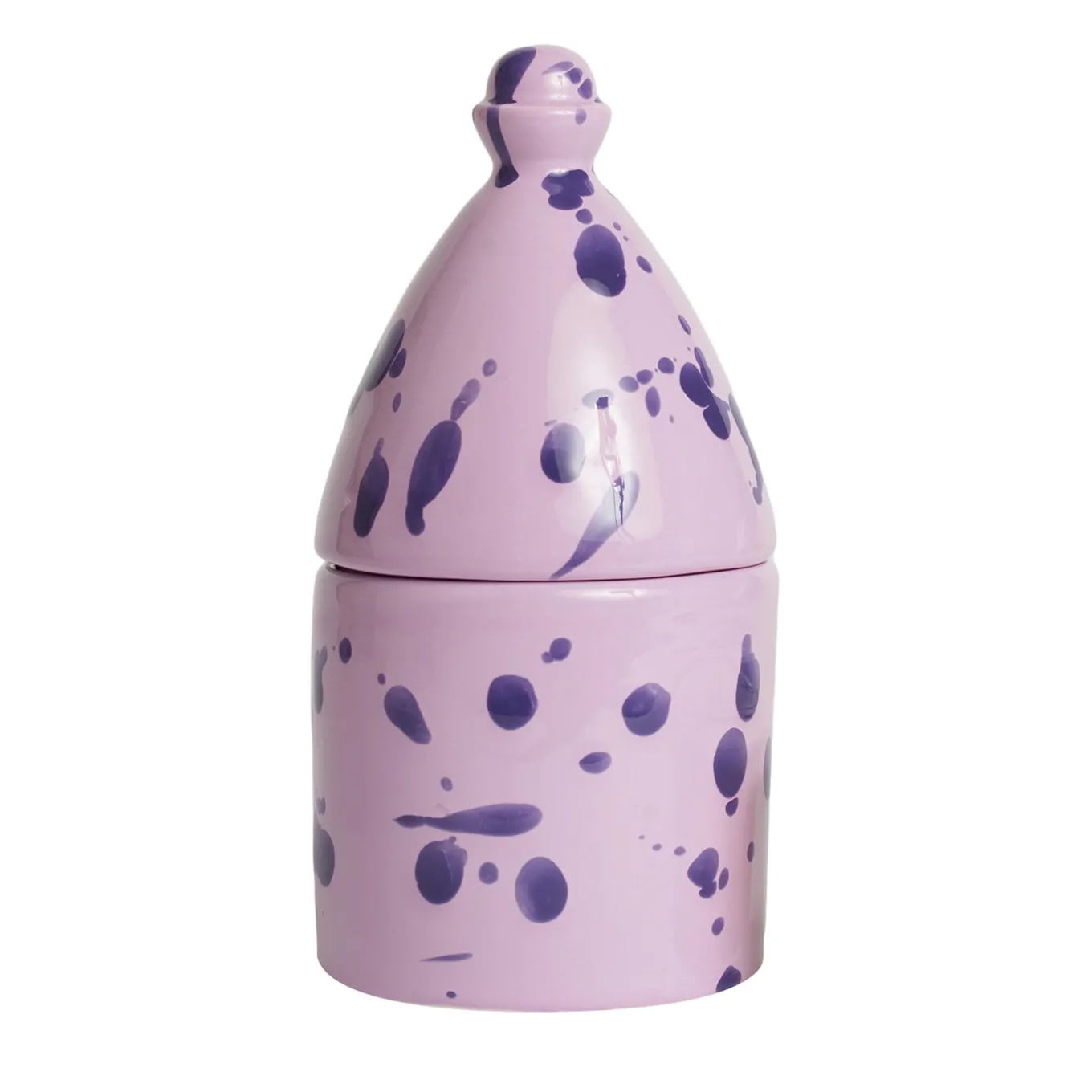 A magnificent tribute to the Itria Valley the southern region of Apulia, this candle holder features an elegant yet simple design inspired by the distinctive shape of a trullo, a typical local house. Handmade of lilac and purple painted ceramic, it is completed with a handmade soy wax candle boasting a lavender and iris scent combining warming and enveloping qualities. Available in other colors, this piece comes in recycled cardboard and a rough linen box.