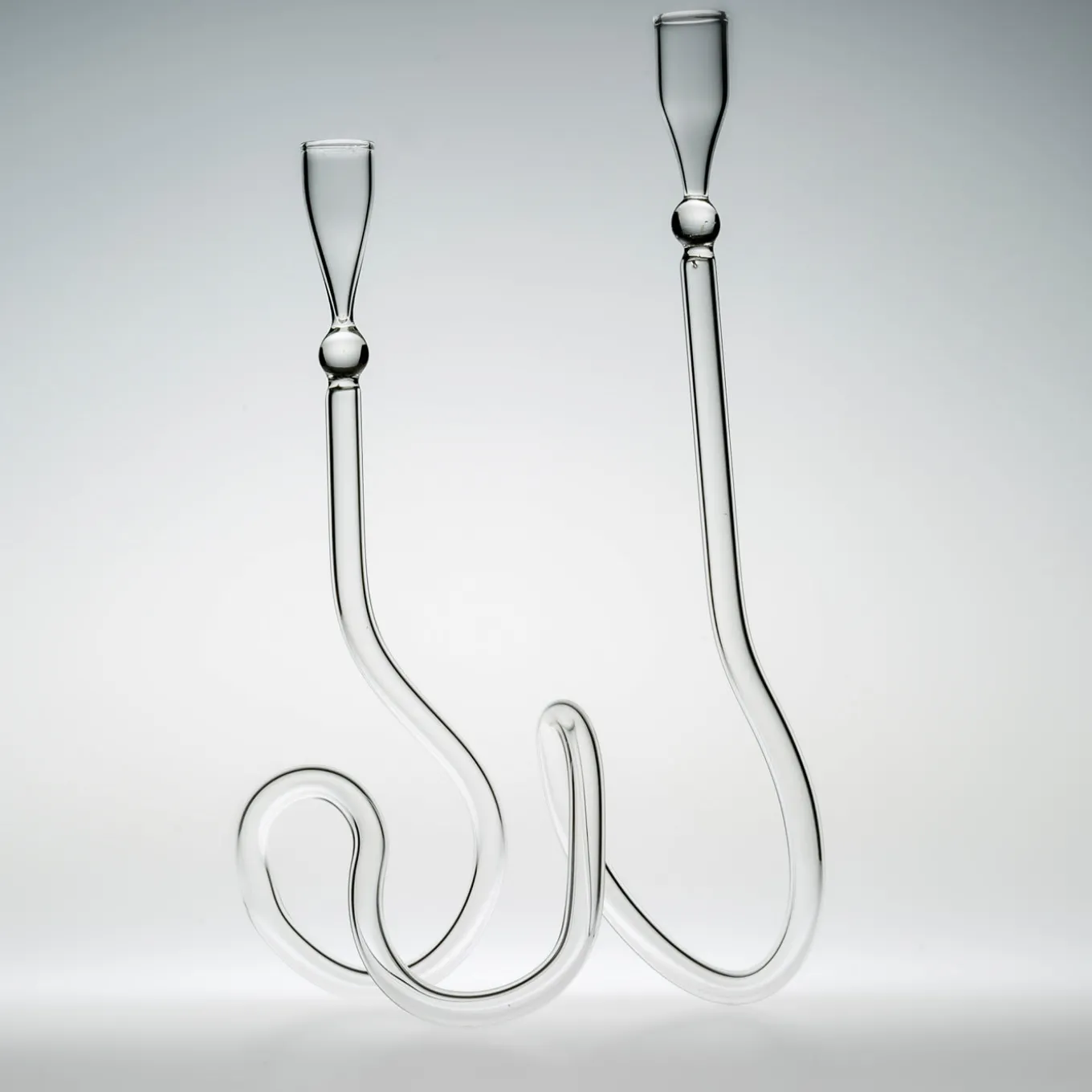 Handcrafted in Venice, this candle holder is a signature product by Casarialto. Entirely made of transparent glass, this diaphanous candle holder shaped as a tube strikes for its lightness, both in terms of weight and aesthetic.