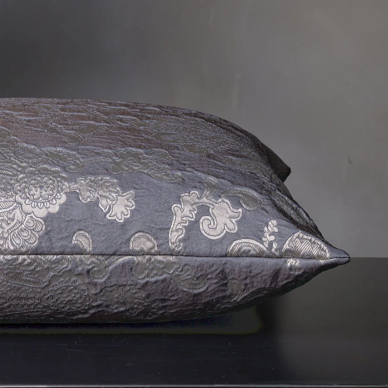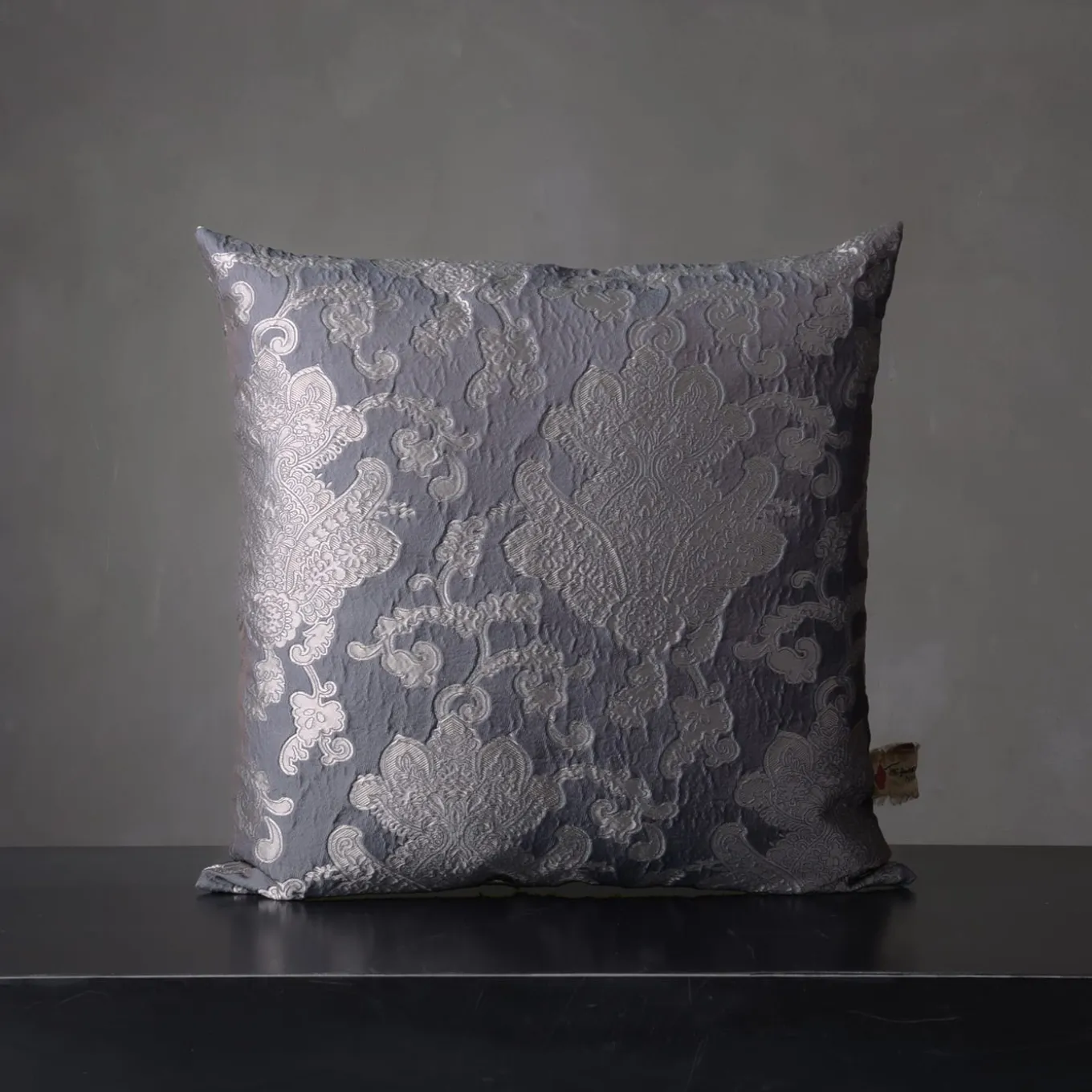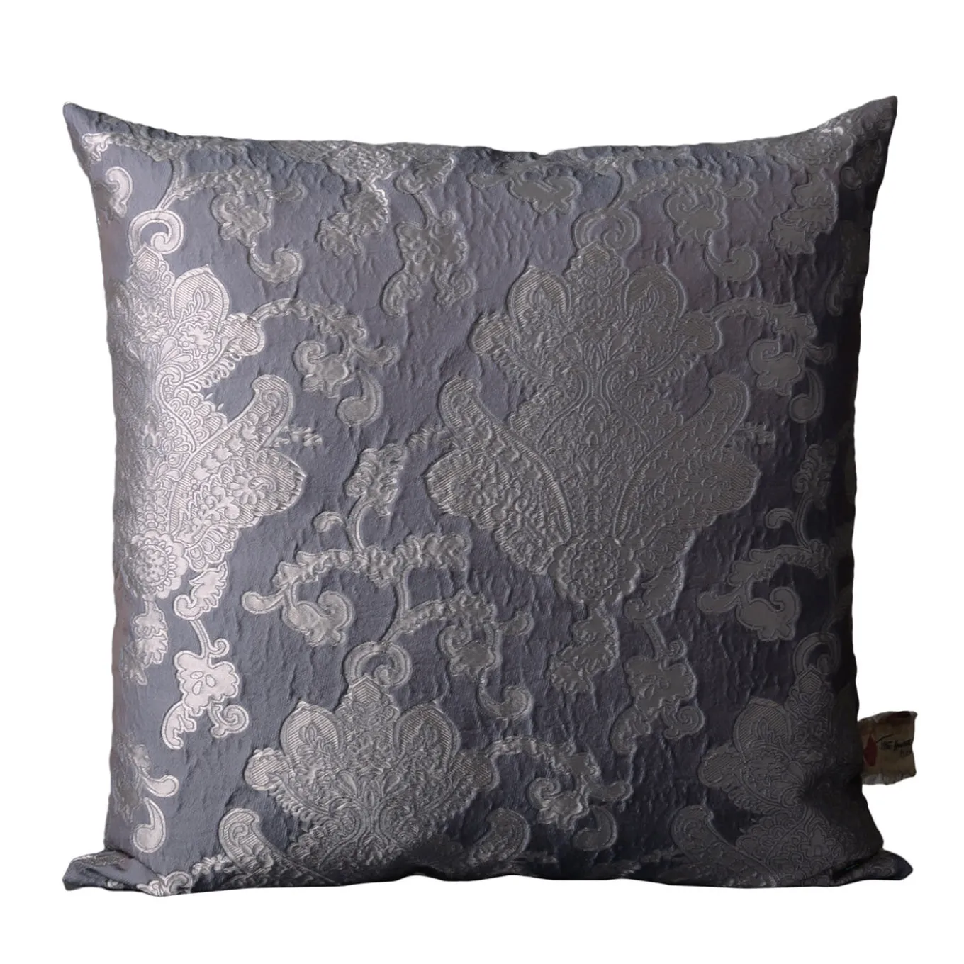 Fancy in its minutely detailed floral jacquard design, this square cushion will surely capture the eye with its intricate detailing and refined cool tones. The silvery decoration echoes a distinct sense of romanticism, suggesting the cushion is an ideal solution for accenting otherwise restrained sofas or beds. More color variants are available in the Artemest catalog.