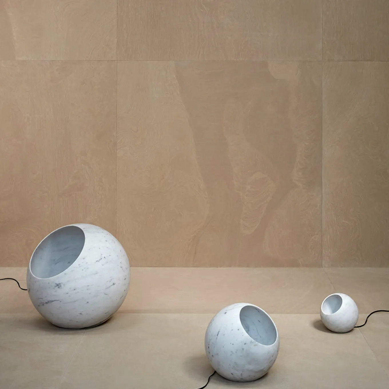 The Urano Table Lamp designed by Elisa Ossino for Salvatori, is a stunning sphere crafted from a cube of Bianco Carrara marble. Complimenting any contemporary style decor, the light creates a warm and romantic atmosphere in your living room, lounge room or bedroom. Available in 18 and 30 cm diameter for the table or 50 cm as a floor lamp.