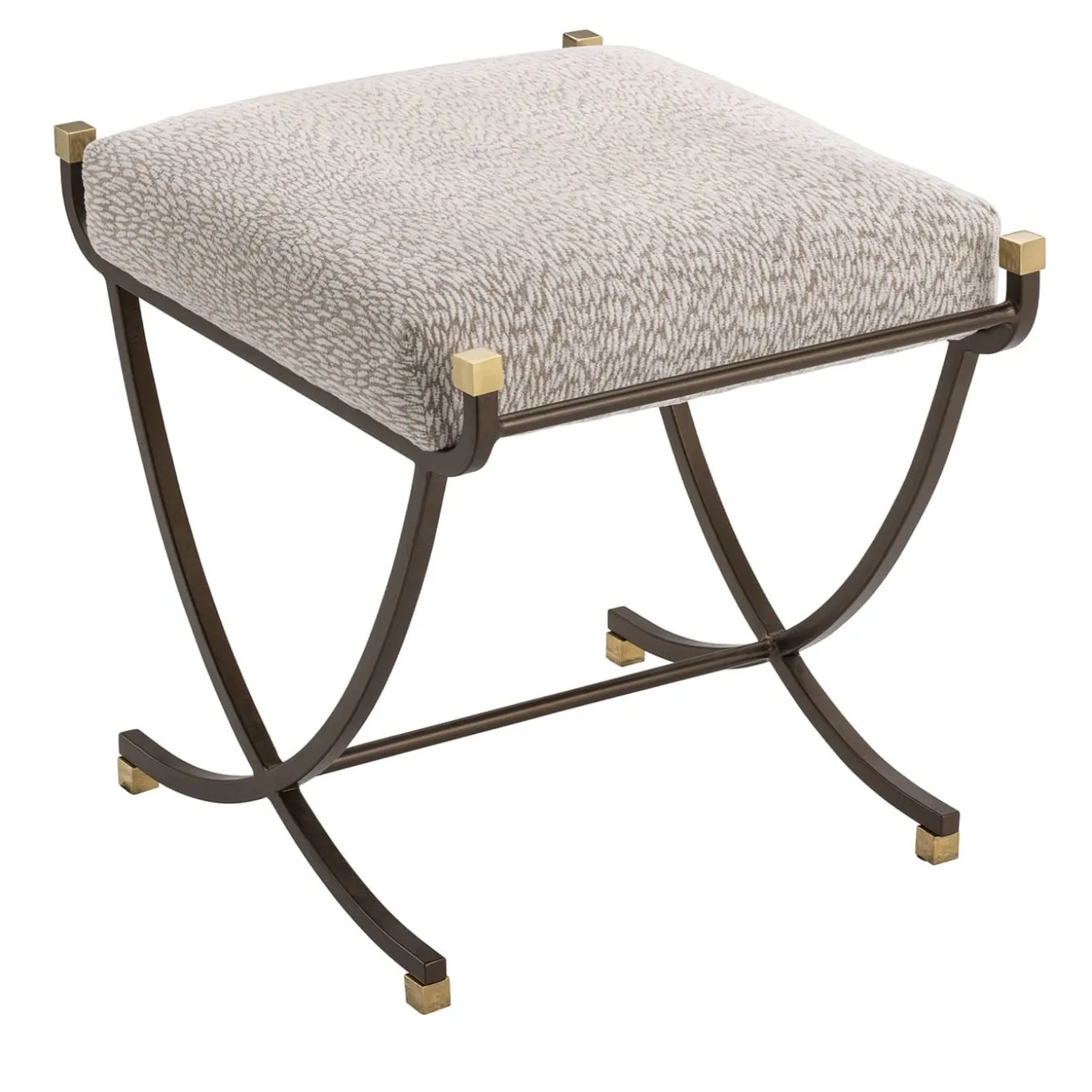 Distinguished by its sturdy iron frame and elegantly cross-legged design, the Urban iron stool features a plush, upholstered cushion that enhances both comfort and style. Brass-accented edges add a touch of sophistication, making this stool a versatile addition to any room. Ideal as extra seating in a living room, kitchen, or entryway, it seamlessly combines functionality with an understated elegance. Please contact the Concierge for more details.
