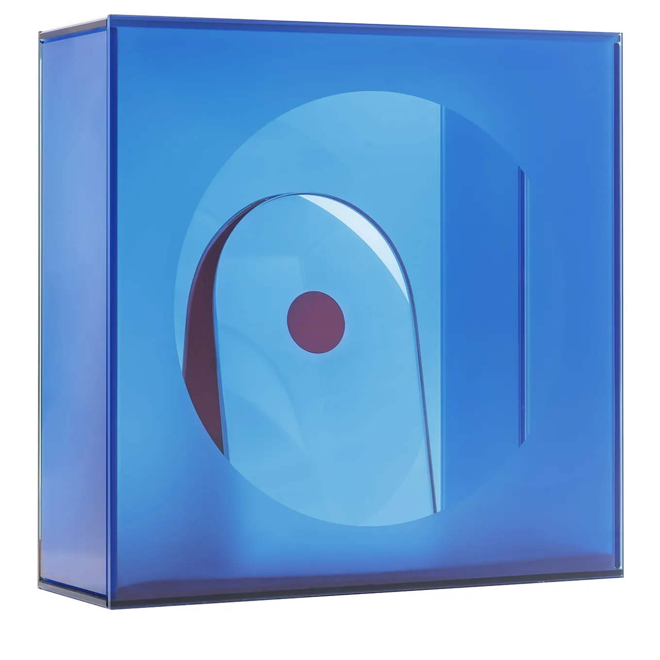 A three-dimensional illustration that takes on volume and shape through areas in light and others in shadow. The deconstruction of reflections on several levels is defined thanks to the calibrated alternation of transparent, reflective, satin or lacquered areas, all placed on a coloured sand background that recalls the origins of glass.