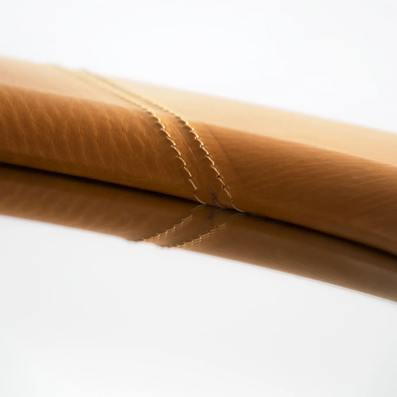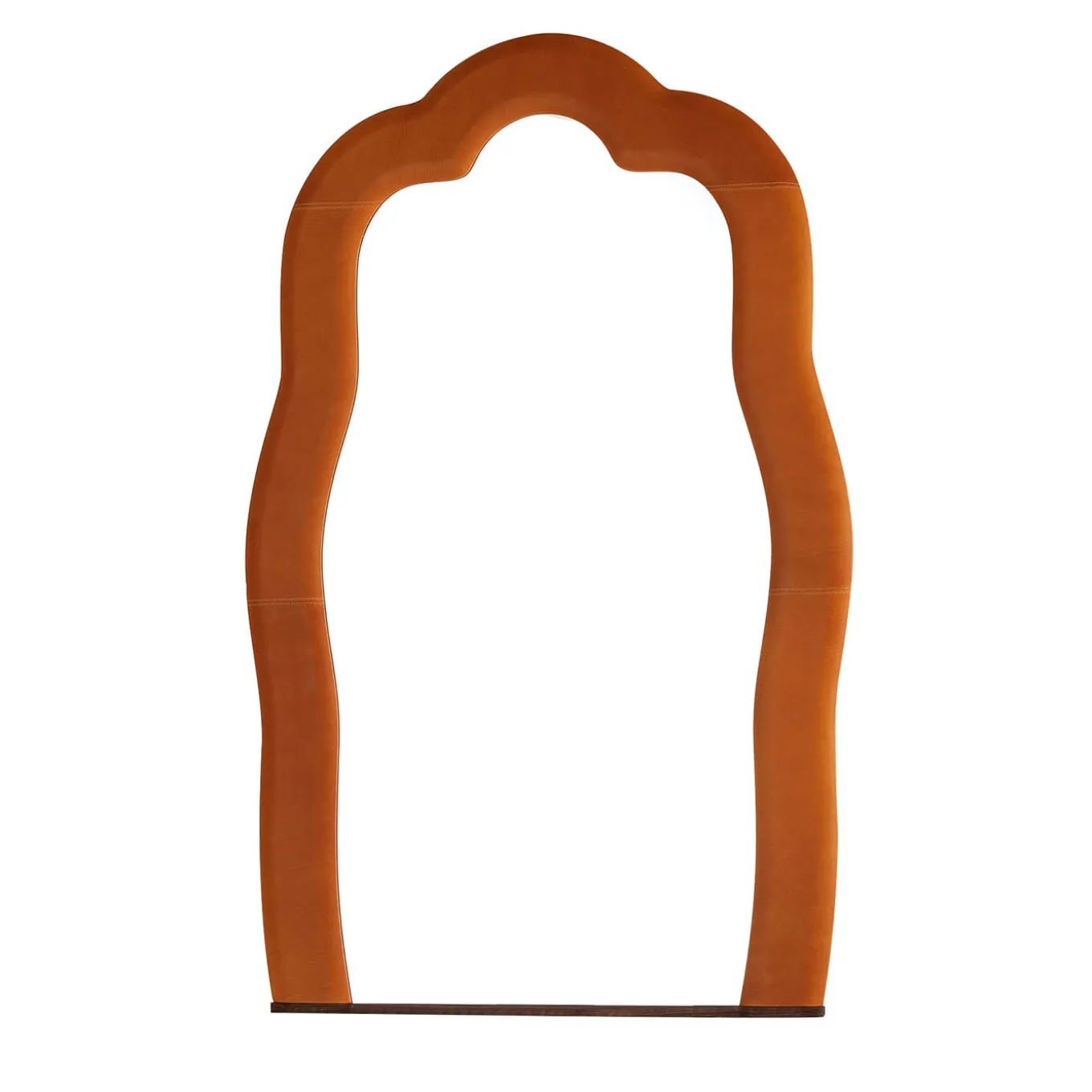 A mirror that can be a portal to an imaginary world, is proposed for an extremely scenic furnishing. Its shape is organic and it reproduces the sea waves. Its look is warm and enveloping thanks to its thick frame, covered with leather. The frame cover and the dimensions of the mirror are customizable, please contact the Concierge for further information.