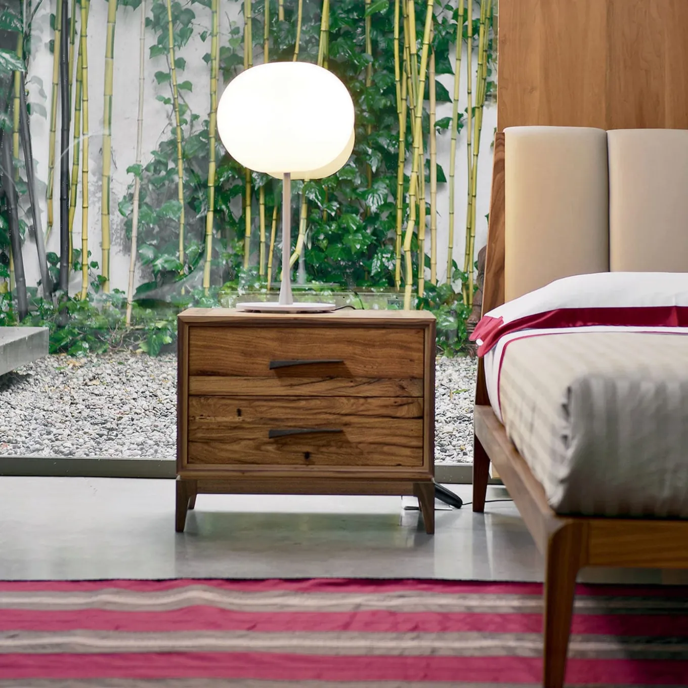 Velo solid wood bedside tables are the result of passion, skills, and refined craftsmanship. They feature structure in solid walnut blockboard and drawers in antique oak with a slightly inclined handle to add personality to the furniture. Thanks to the quality of materials and their sturdy design, these pieces will live on for many generations to come. Handmade and customizable in size, finish and details.