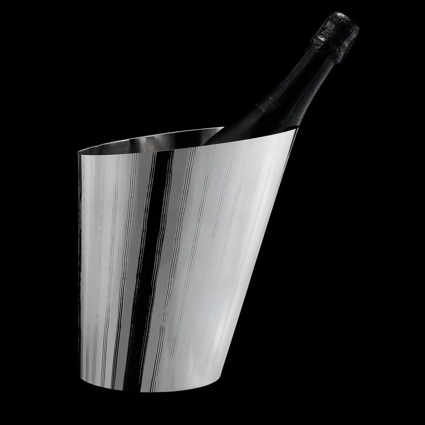 Asymmetrical champagne bucket beautifully handcrafted in a silver-plated alloy by master silversmith Zanetto.