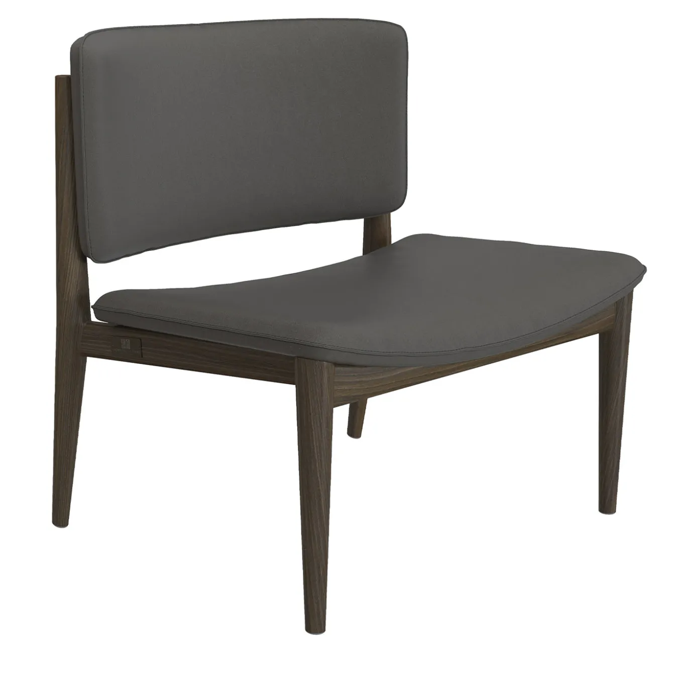 Designed to complement a variety of interiors, this lounge chair features a modern silhouette with clean lines and a balanced form. The seat and backrest are generously padded and covered in premium leather finished in a wengé dark gray tone that enhances its sophisticated appeal. Supported by tapered wooden legs in matching wengé, the chair combines ergonomic comfort with understated elegance, suitable for both residential and professional settings.