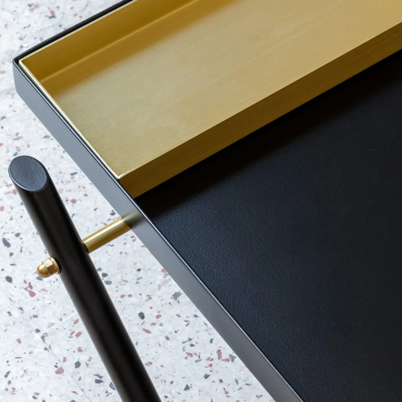 Brimming with sophistication, XX is an elegant tray table fit for all occasions. Crafted with precision, its lacquered iron and brushed brass top rests on a foldable, X-shape frame. The small, versatile brass inner tray seamlessly fits within the iron top, serving as an accent and storage compartment. Brass details and sleek sheet metal lines make XX a distinguished accessory for contemporary or traditional dining rooms. Available in a range of exquisite colors to suit any decor.